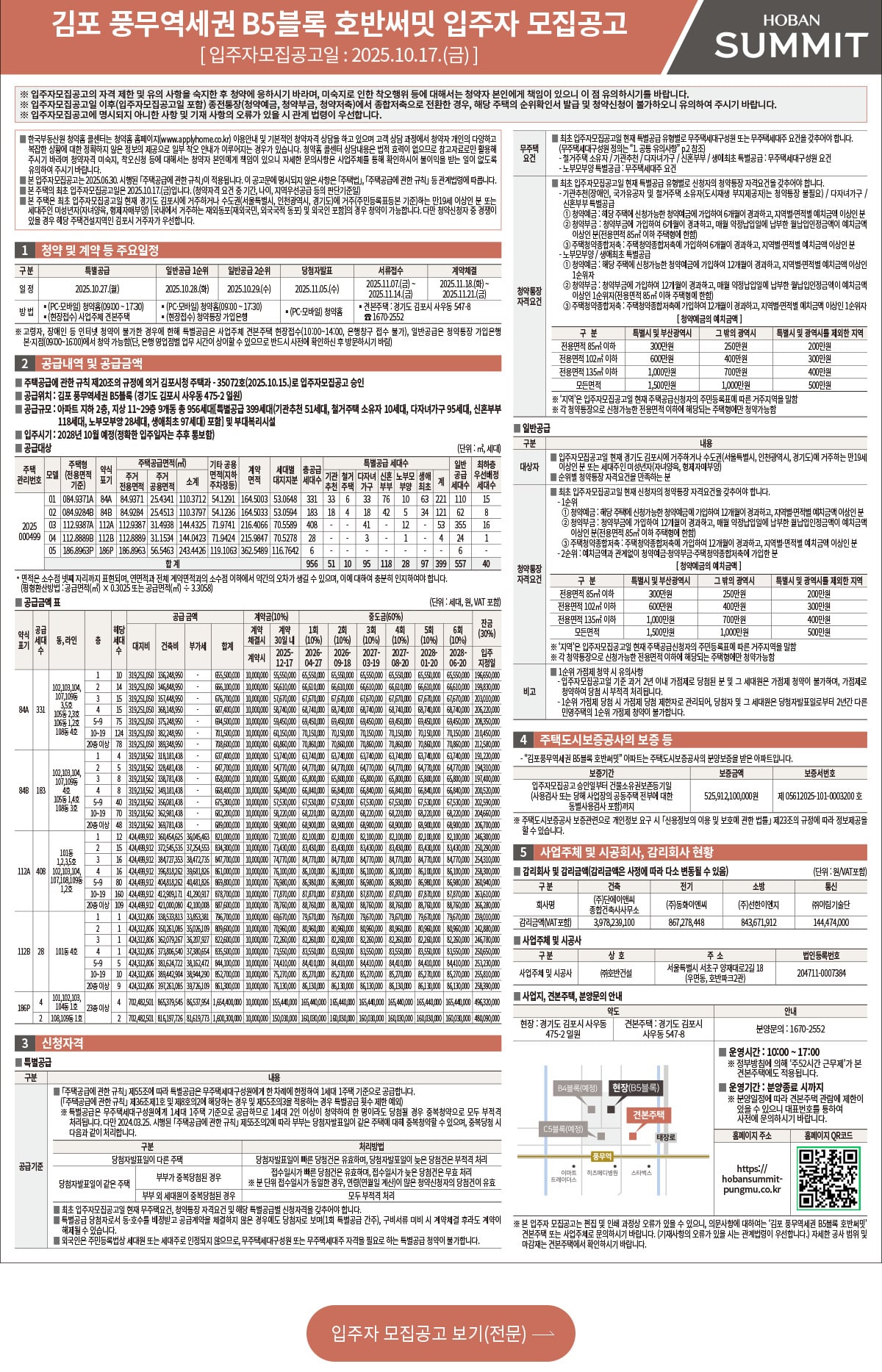 김포 풍무 호반써밋은 경기도 김포시 사우동 475-2번지 일원에 들어서는 대단지 브랜드 아파트입니다. 지하 2층~지상 29층, 8개 동, 총 956가구로 계획되었고 전용 84·112·186㎡(펜트하우스)로 구성됩니다. 특히 84㎡가 514가구로 실수요 비중을 넉넉히 담았고, 112㎡ 436가구·186㎡ 펜트 6가구는 인근에서 희소한 중대형 수요를 겨냥합니다. 시행·시공은 호반건설로, 김포 풍무 호반써밋의 시공 안정성과 사후 관리 신뢰를 높여 줍니다.