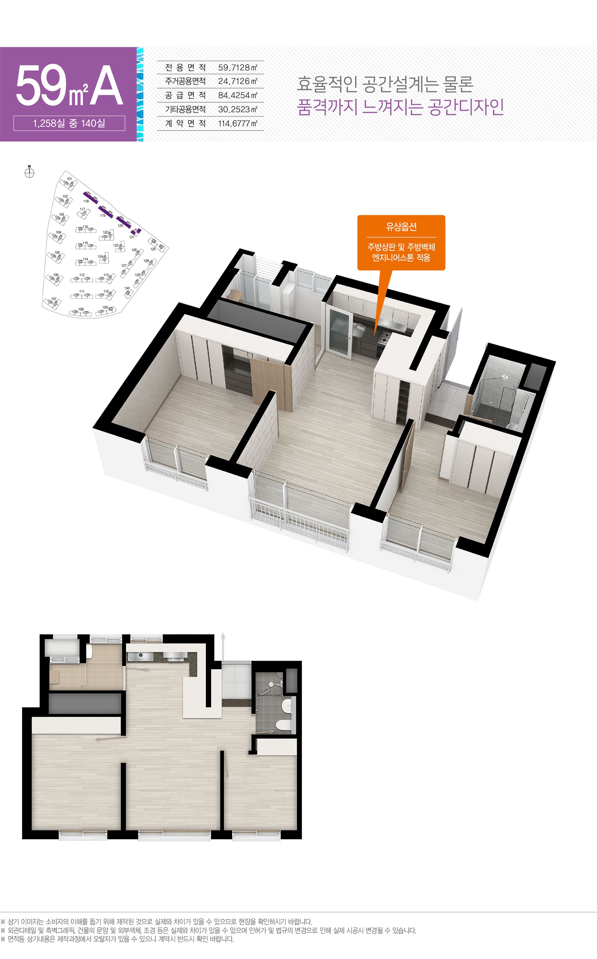 84A: 4Bay 판상·전면 채광·맞통풍·팬트리·드레스룸·알파룸. 가족 성장에 따라 방/수납 가변이 쉬움.