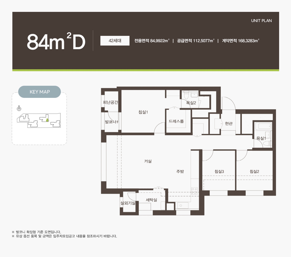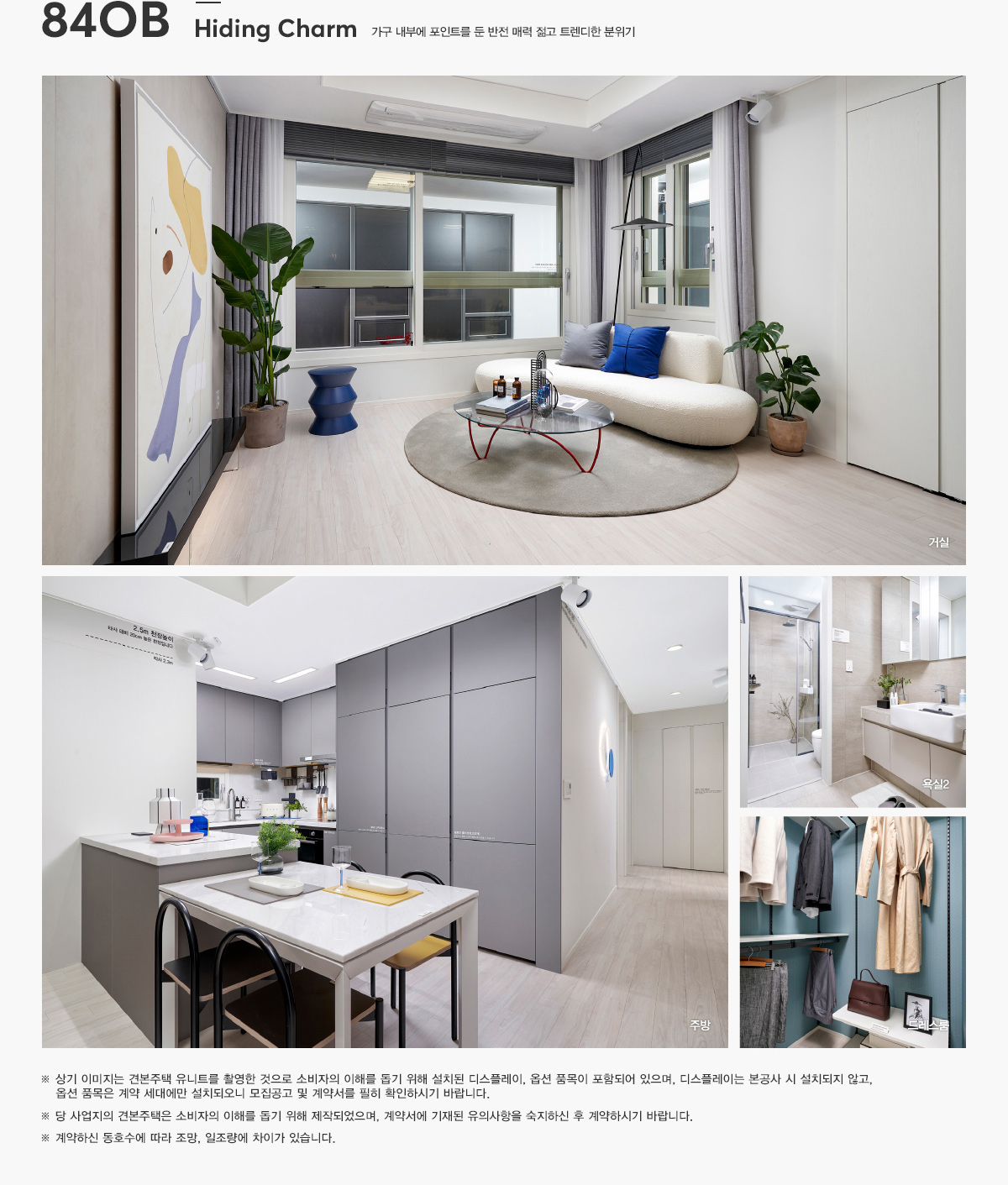 아파트는 84·105·185·192㎡까지 11개 타입, 오피스텔은 84㎡ A·B로 선호대역을 촘촘히 채웠습니다. 84A·B는 4Bay 판상형에 맞대면 거실·주방 동선으로 환기와 채광이 탁월하고, 세탁실 직결·팬트리·드레스룸으로 가사 효율을 높였습니다. 3면 발코니 확장형 84C는 안방 폭과 프라이버시가 돋보이며, 이면 타워형 84D·E는 시티뷰와 개방감이 장점입니다. 가족 구성이 다양한 도심 수요에 대응한다는 점에서 대구 신세계 빌리브 라디체의 상품성이 드러납니다.