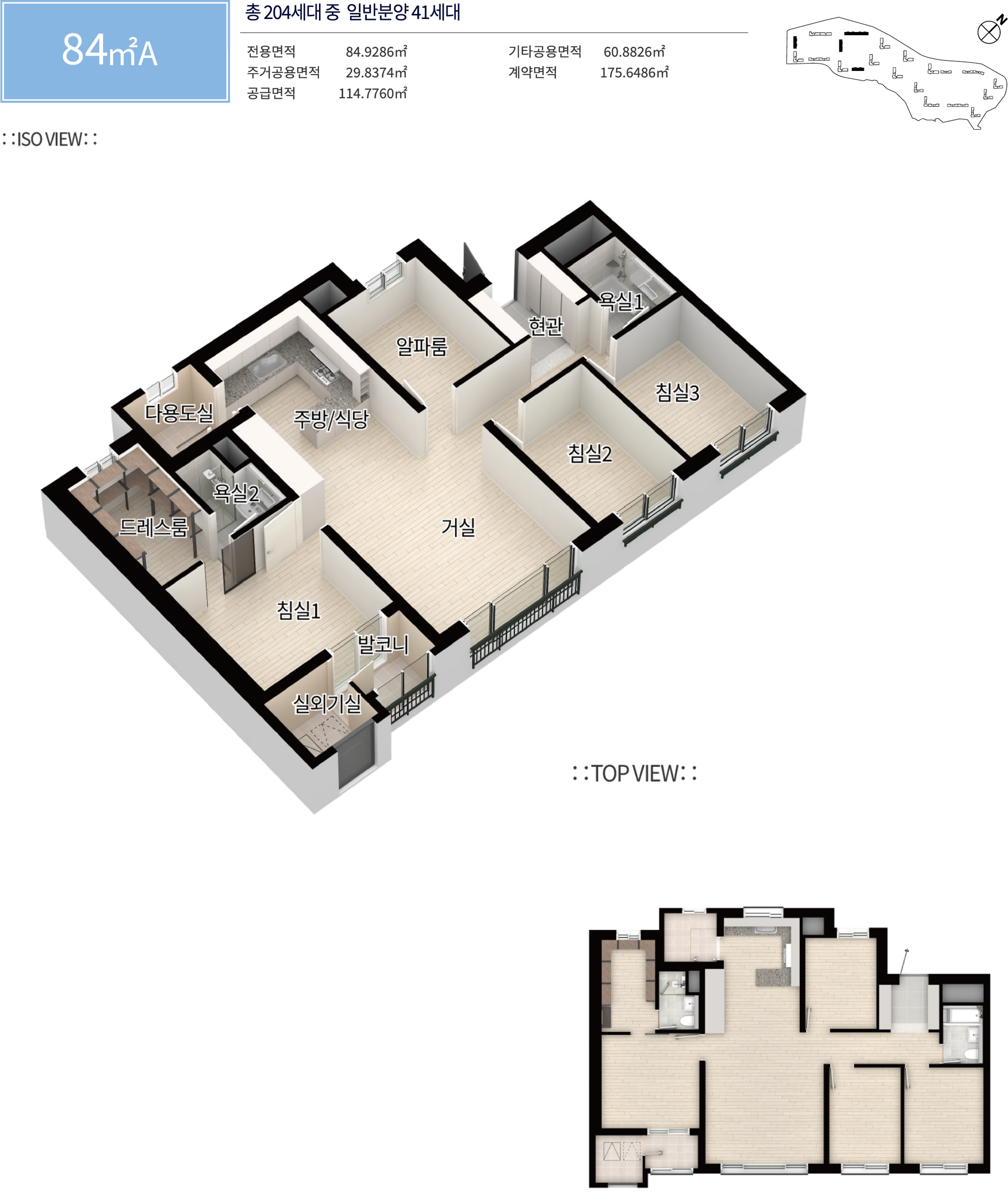 전용 59~85㎡로 실수요 선호가 높은 중소형 위주 라인업입니다. 판상형 4베이 중심의 맞통풍 설계가 기본이라 채광과 환기 효율이 좋고, 타입별로 알파룸과 팬트리를 특화해 수납 스트레스를 줄였습니다. A타입은 ㄷ자 주방과 대형 팬트리가 강점이고, B타입은 타워형에 ㄴ자 주방 구성이어도 수납을 넉넉히 확보해 취향에 따라 고르기 좋습니다. 실제로 두산위브 센트럴파크 강화는 “작아도 넓게 쓰는” 체감면적 설계가 돋보입니다.