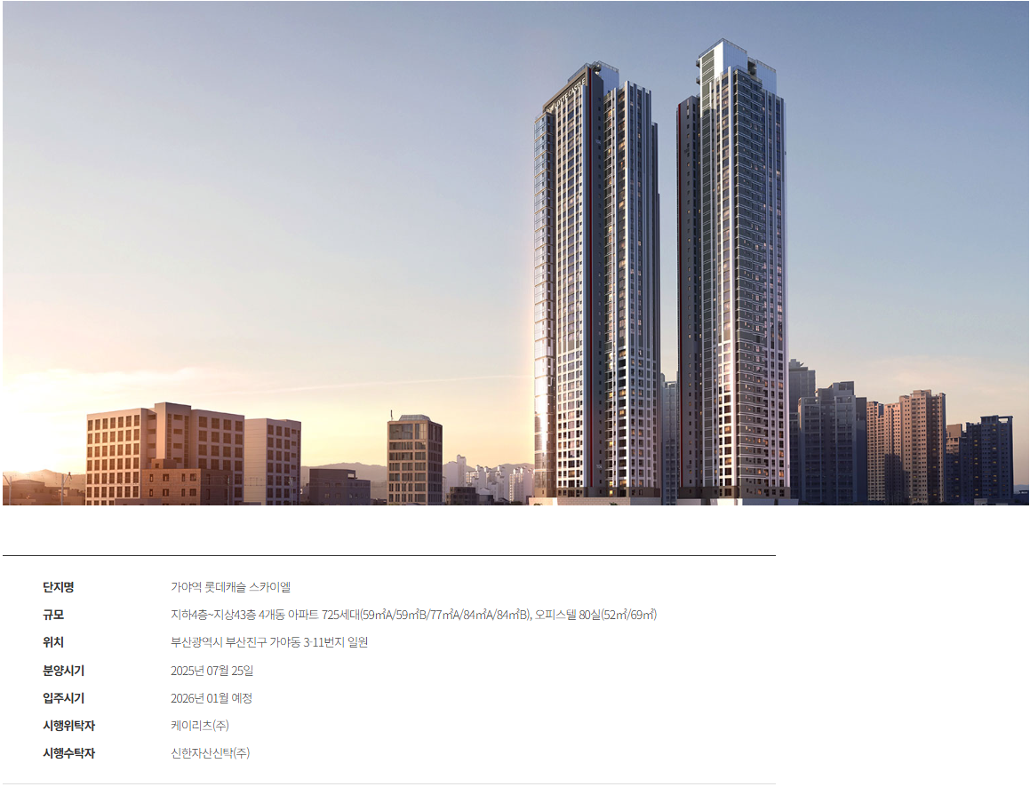 결론적으로, 가야역 롯데캐슬 스카이엘은 초역세권의 시간 절약, 도심 상권의 체류 가치, 대단지 커뮤니티의 일상 완결성을 한데 엮은 도심형 신축 대안입니다. 북항과 서면을 잇는 도시 재편의 흐름이 현실화될수록 생활 편익이 가격에 반영될 여지가 커집니다. 동·호수별 일조와 조망, 타입별 수납 밀도와 가변성, 커뮤니티 동선만 세심히 확인하신다면, 가야역 롯데캐슬 스카이엘은 오늘의 편안함과 내일의 확장성을 함께 설계하려는 분들께 충분히 설득력 있는 선택지로 남을 것입니다.