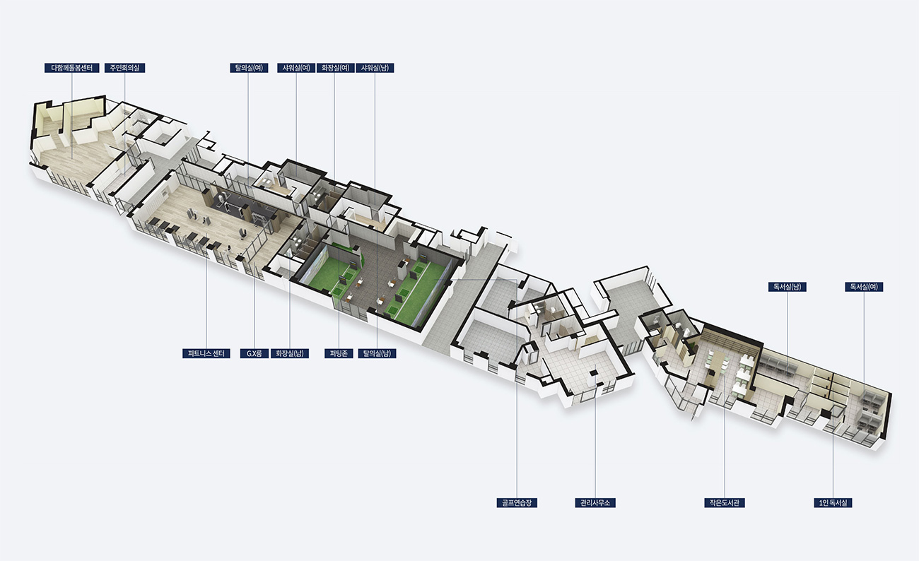 보행 중심의 동선 위에 생활 편의와 취미, 학습 기능을 골고루 얹었습니다. 실내에는 피트니스와 GX룸, 샤워실로 이어지는 운동 라인업, 골프타석과 스크린, 퍼팅존을 갖춘 골프연습장, 작은도서관과 스터디룸, 주민회의실이 들어섭니다. 다함께돌봄센터를 통해 돌봄 공백을 줄일 수 있고, 무인택배를 포함한 기본 보안 설비로 일상의 안정감을 높입니다. 단지 외부는 완급이 다른 산책 동선을 품어 아이부터 어른까지 머무는 시간이 자연스럽게 늘어납니다. 이렇게 문산역 동문3차 디이스트의 커뮤니티는 집 안과 밖의 경계를 부드럽게 잇습니다.