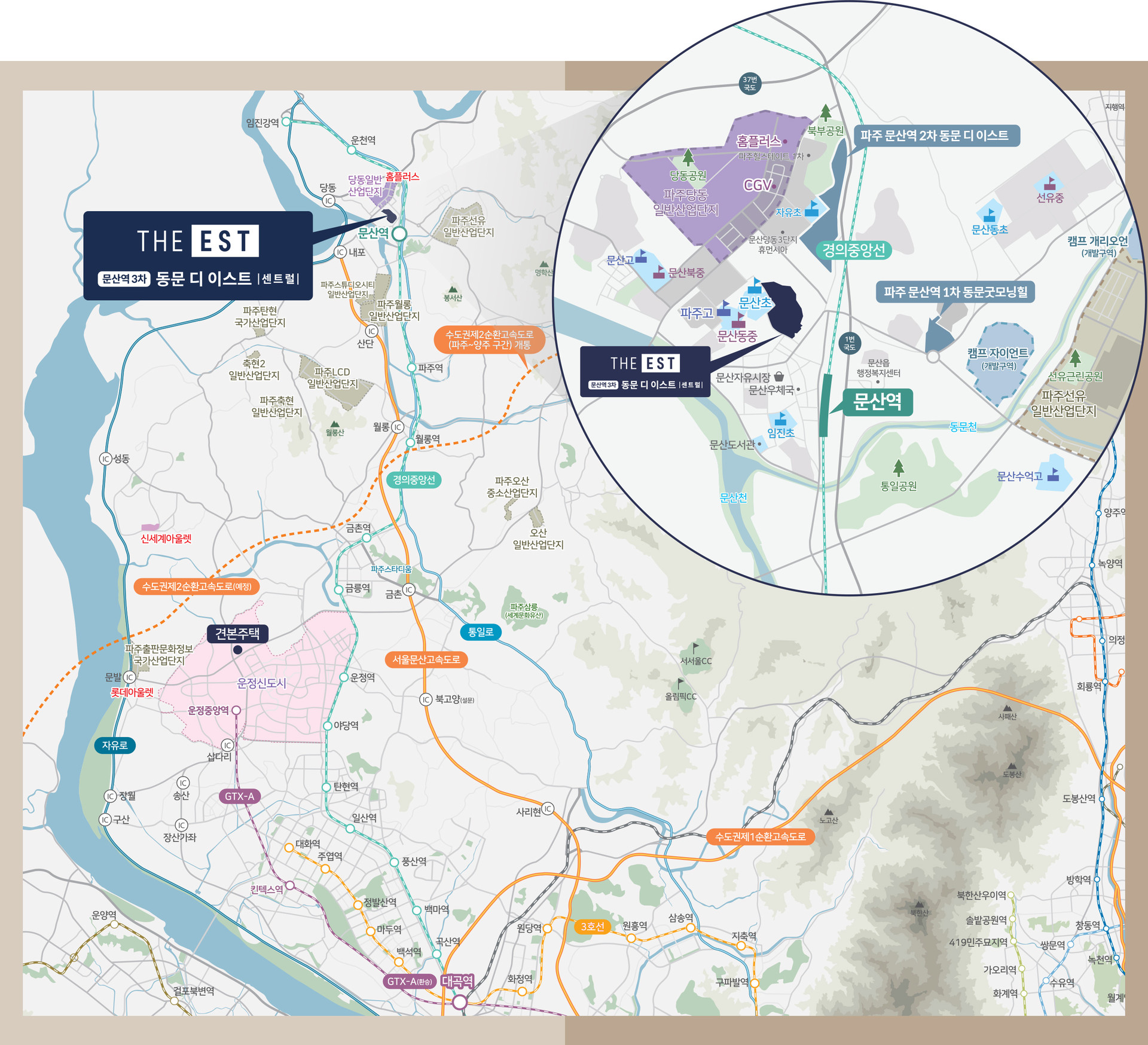 단지 반경 내 다수의 일반산단이 분포해 직주근접성이 우수합니다. 당동·선유·월롱 일대 산업벨트는 출퇴근 시간을 줄여 실거주 만족도를 높이고, 안정적인 임차·매수 수요의 기반이 됩니다. 산업 배후가 촘촘한 권역에서 신축 역세권 대단지는 경기 변동에도 기본 수요가 유지되는 경향이 있습니다. 이 점에서 문산역 동문3차 디이스트는 생활형 자산으로서의 방어력이 돋보입니다.