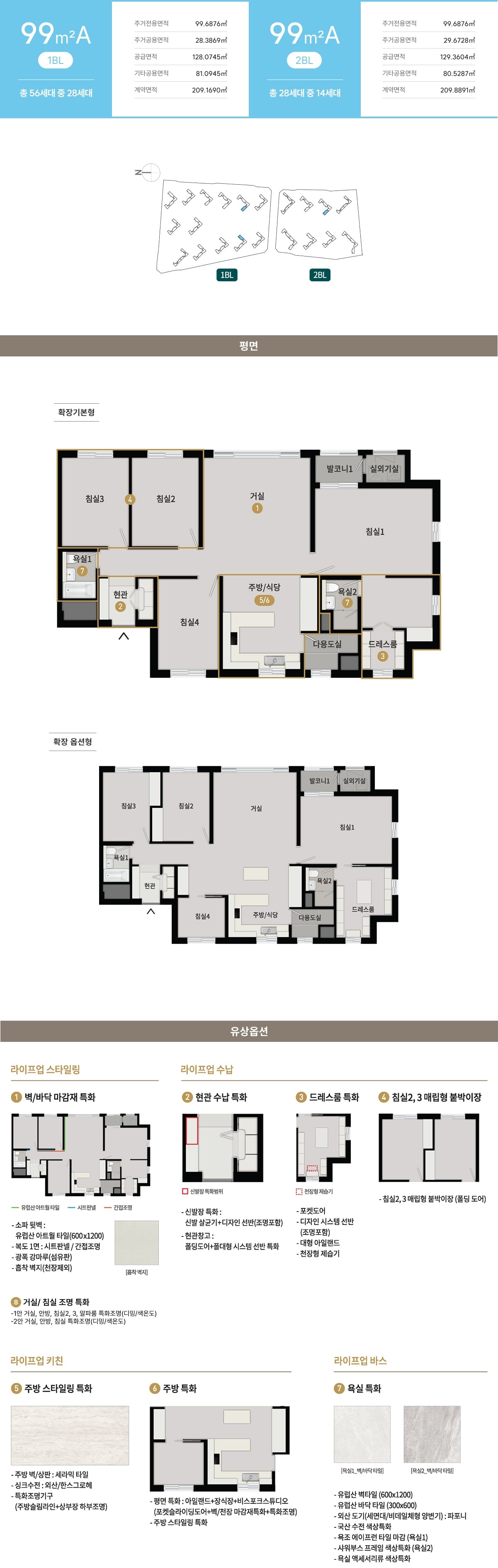 전용면적 오십구, 팔십사, 구십구, 백십사, 백사십오 제곱미터 등 폭넓은 라인업이 제공되어 다양한 가족 형태를 포괄합니다. 오십구는 수납 특화와 동선 압축으로 관리 효율을 높였고, 팔십사는 사면 개방을 고려한 판상형 위주 설계로 채광과 통풍, 가구 배치 자유도를 확보했습니다. 일부 타입의 알파룸은 서재, 취미실, 드레스룸 등으로 손쉽게 전환할 수 있어 생애 주기에 맞춘 변화가 가능합니다. 구십구 이상 평형은 대형 팬트리와 드레스룸, 다목적실을 통해 계절 수납과 가족별 영역 분리가 용이합니다. 주방은 기역자와 디자형 레이아웃, 아일랜드 구성으로 조리와 보관, 식사의 흐름을 매끄럽게 연결합니다. 이처럼 청주 푸르지오 자이는 면적대별로 확실한 장점을 갖춘 평면 체계를 제시합니다.