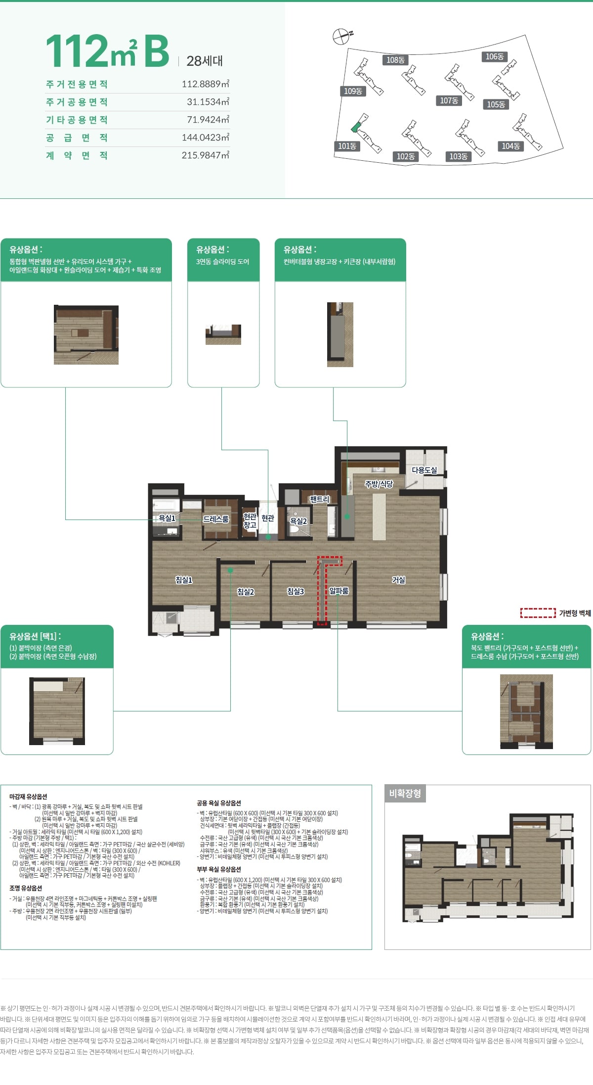 4베이 판상형 위주의 84·112㎡는 채광·환기에 유리하고, 일부 5베이는 거실폭·수납이 풍부합니다. 현관 팬트리, 대형 드레스룸, 다용도실 연계 주방, 가변형 벽체는 “방은 넉넉한데 수납이 부족하다”는 실거주자의 고질적 불만을 줄입니다. 자녀가 성장할수록 방 구성을 재편해 쓰기 쉬운 구조는 장기 거주 만족도에 직결됩니다. 펜트하우스(약 186㎡급) 도입은 단지의 상징성과 희소가치를 높입니다.
